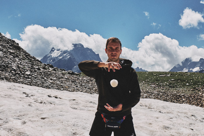 - Первый снег, который мы пощупали в горах. Конечно же поиграли в снежки :)