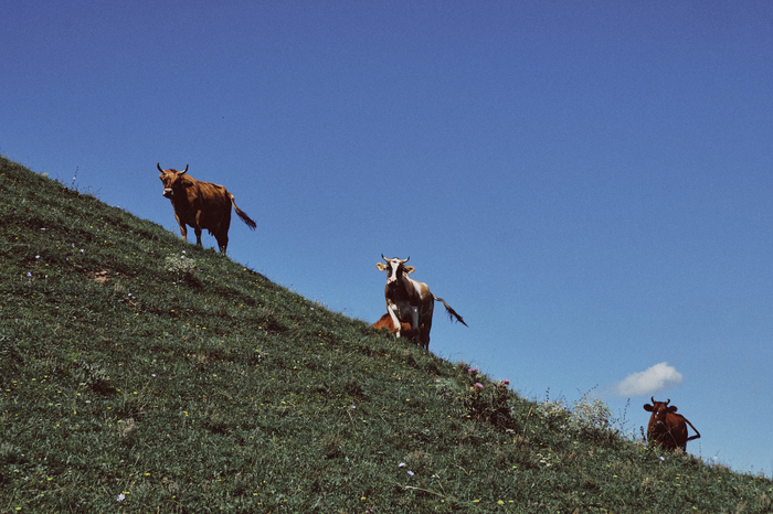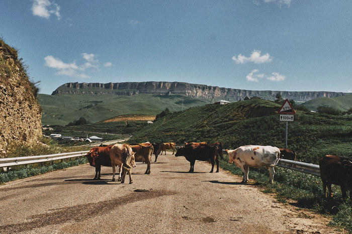 Первое, что нам бросилось в глаза еще по дороге, это коровы, лошади, овцы, которые ходят везде, по проезжей части, по холмам.