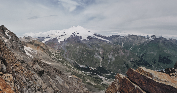 Вид с горы Чегет на пики Эльбруса