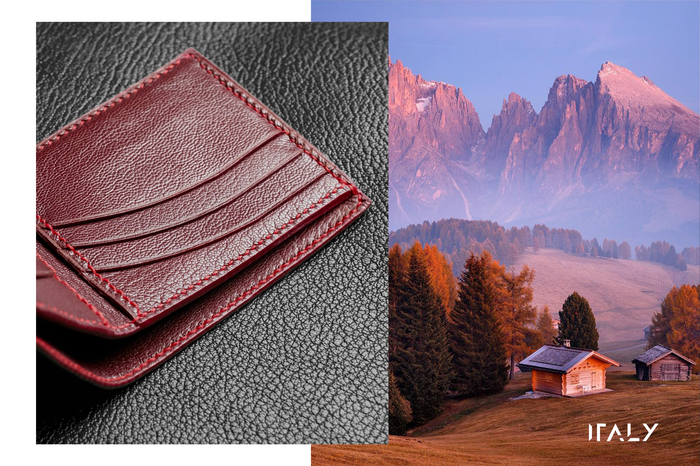 Кошелек-бифолд из натуральной кожи козы, производства Италия, лицевая сторона - кожа растительного дубления, Италия