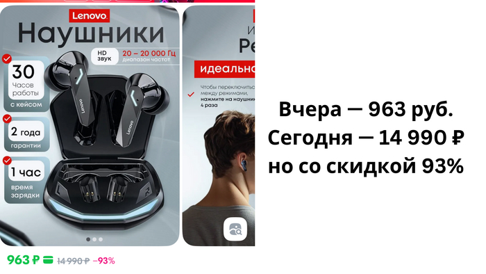 "Было 10 000 ₽, стало 999 ₽!", то мозг такой: "Вау, надо брать!", но внутренний скептик сразу говорит, что это всё фуфло. Однако, если продавцы продолжают так делать, значит это работает, и люди покупают??