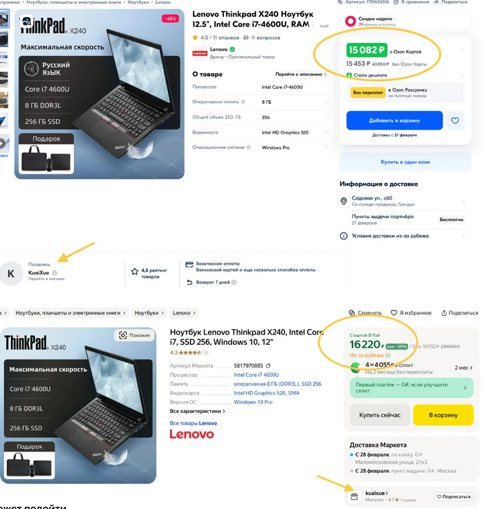 2) Ноутбук Lenovo ThinkPad X240 под разными названиями и ценами, хотя это одно и то же устройство из одного и того же магазина.