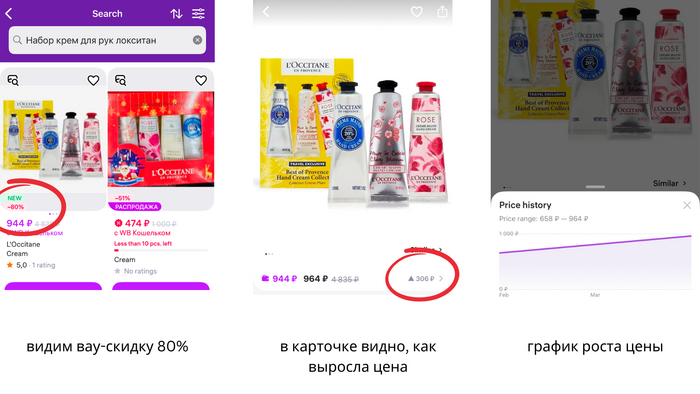 При этом, покупатели видят щедрую скидку на карточке товара: вау, минус 80%, надо брать!