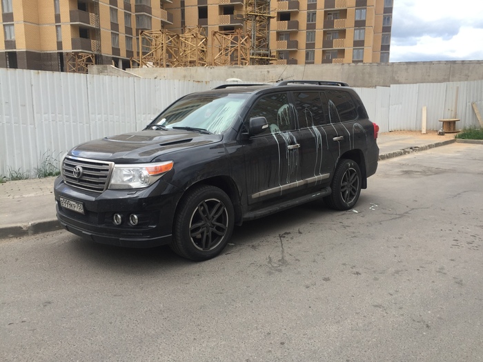 А теперь внимание. Смотрим на предыдущее место парковки,где "паркомен" нанес мстительную жидкость на крузак в999кр 750 и видим нового героя!! Крузак №2!
