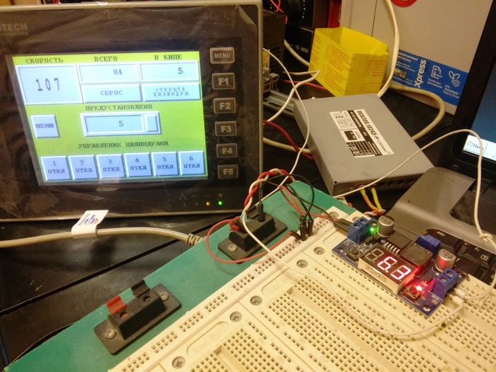 Вот статья Нужна помощь , я просил подсказать по этой связке. В итоге, ничего не добившись, решил разобраться сам). Задача была отсчитывать детали на конвейере и при достижении заданного результата отбрасывать их в сторону, и так далее. Так же смотреть за скоростью линии. Все получилось, тесты пройдены. На следующей неделе будет установка на оборудование. Сниму подробное видео о работе.