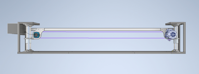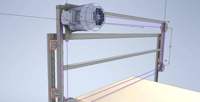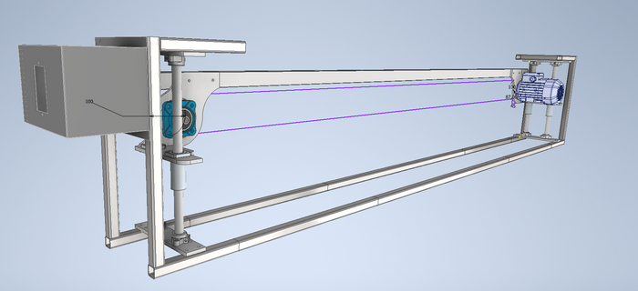 Всем привет. Появилась задача нарезать листы поролона на полоски. Резать горячей нихромовой ниткой можно легко, но вред от ядовитых дымов и ужасная вонь заставили идти по другому пути. Мною разработана вот такая конструкция, рез осуществляется абразивной струной, которая приводится в движение мотором. Валы, подшипники, опоры - стандарт. Мотор 370 ватт. Рама из профиля квадратного сечения 25х25х1.5 мм. Подача каретки будет или пневматическим цилиндром или же ручная. Внизу под подшипниками, на валах, скорее всего будет пружины для подъема каретки в прежнюю позицию.