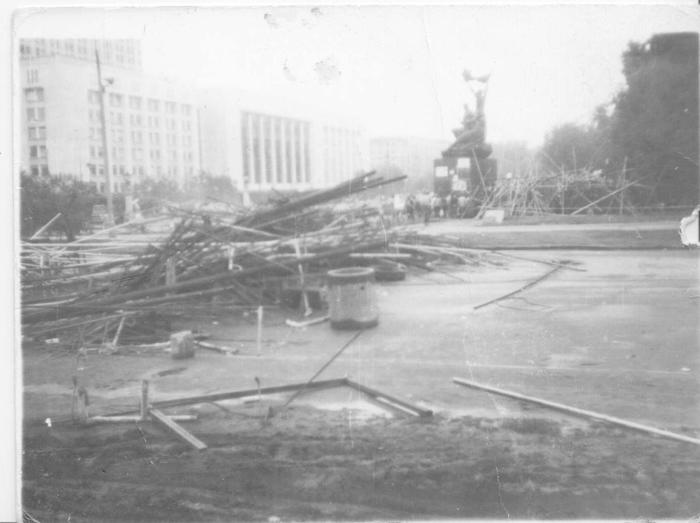 В этом посте (Август 1991 года), на одной из фотографий, на плите было написано "долой пугояза". Это фамилии министра внутренних дел СССР - Бори́с Ка́рлович Пу́го и министра обороны СССР - Дми́трий Тимофе́евич Я́зов.