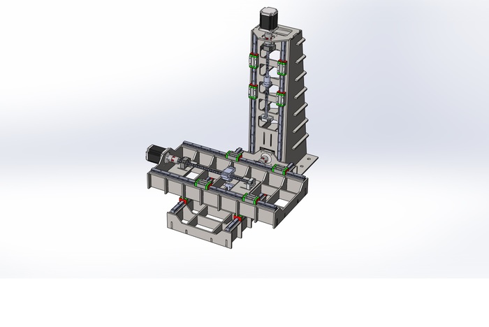 Продолжение этой темы Фрезерный станок. На фото ниже представлена модель фрезерного станка, как я ее вижу. Колонна Z уже заказана, некоторые рельсы и винты еще в пути. Поперечка возможно будет переделана.