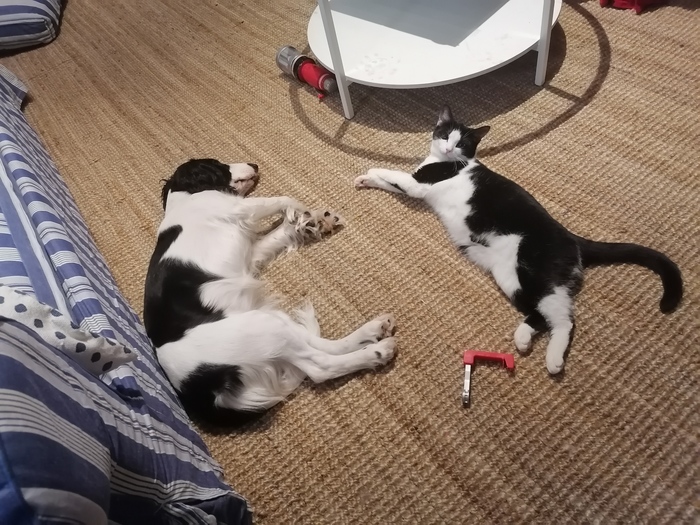 40 Rombertino Собачьи будни Мои Кошки VS Собаки 4 года назад Решил тоже поделиться своими зверями. Черно-белые близнецы это мои, а лабрадор периодически к нам в гости приезжает на неделю-две. Показать полностью 5 [моё] Собака Кот Русский спаниель Лабрадор Дружба Длиннопост Собаки против кошек Ещё 0