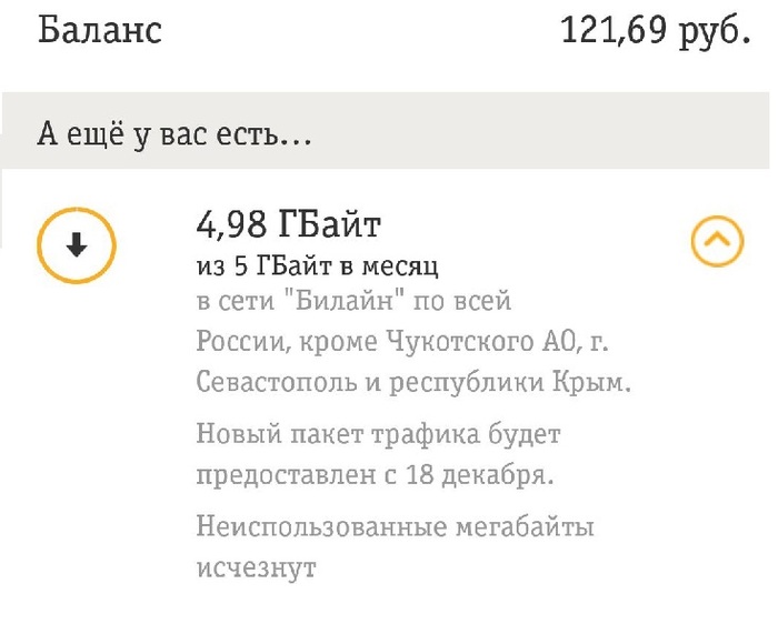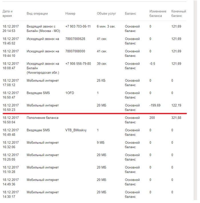 Сидя в автобусе по пути домой я спокойно пользовался интернетом (примерно 40 минут с момента подключения нового пакета), но внезапно он отключился. При попытке зайти через браузер мне показывался долг в 77 рублей, но набрав *100# я услышал что баланс 122 рубля. Придя домой залез на сайт билайна в поисках контактов, "а в ответ тишина" и предложение общаться с ботом. Но легкие пути не для нас и в дебрях сайта я нашел адрес электронной почты и написал туда запрос. Мне перезвонил вежливый юноша Антон и долго объяснял что я сам дурак. По его словам, за тот промежуток между отключением и подключением данной услуги смартфон успел скачать 20 мегабайт по тарифу в 10 рублей за мегабайт, потратил 200 рублей и не смог подключить новый пакет трафика.