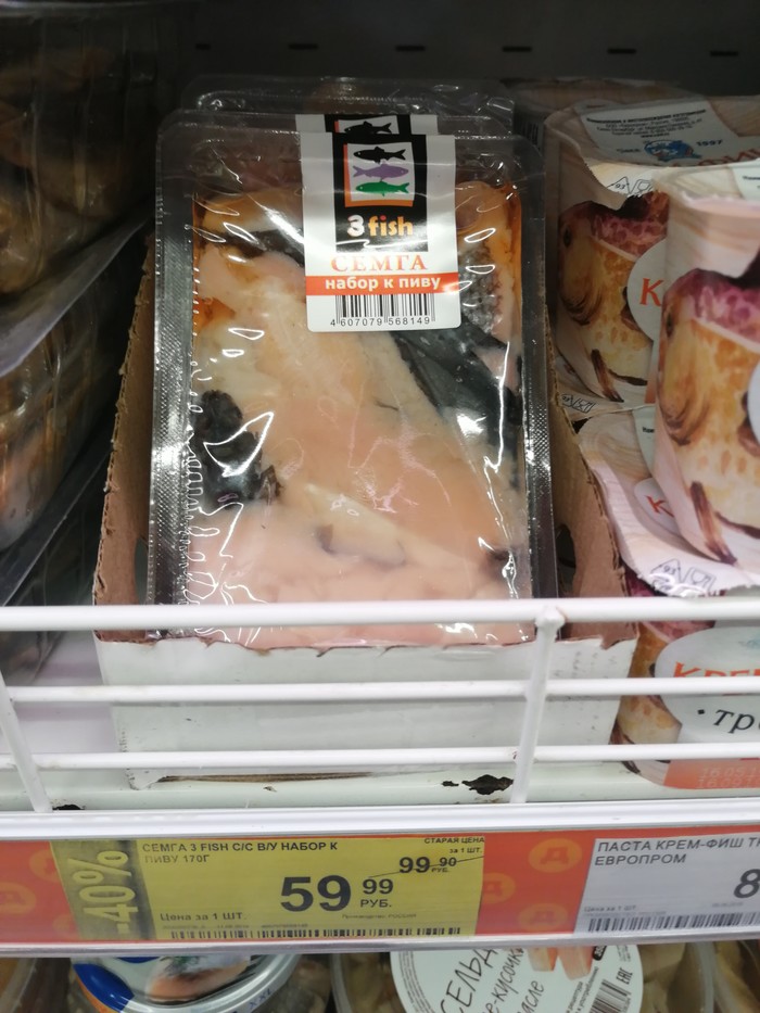 Всем привет. Совершенно случайно взяла в одном из магазинов дикси в Москве вот такую штуку. Называется сёмга набор к пиву. Всегда брала у них набор к пиву, кто было сказано, что там лосось, но это не столь важно. Открыв это чудо, я услышала отвратительный запах не то носков, не то трусов, не знаю, с чем сравнить, но на запах рыбы это не было похоже. Далее, я вернулась, чтобы сделать возврат товара, на что мне было предложено заменить товар. Ну хорошо. Пришла домой, открыла. Абсолютно тоже самое. Составила претензию в роспотребнадзор. Это было полторы недели назад. Что вы думаете? Там эта рыба до сих пор! И она уже даже не бледно розовая, а белая. Все сроки годности соответствуют норме. Рыбу не убрали. Ходила, говорила опять администраторам, чтобы убрали. Нет. Не нравится, не покупайте. Вот такой вот дикси по улице Рогожский Вал, 6к2