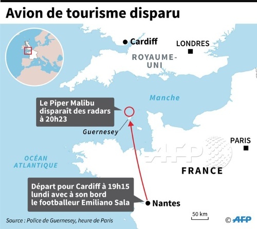 Поначалу оставались сомнения, находился ли Сала на борту небольшого частного самолета Piper-Malibu (производятся с 1979 года, стоят от 1,5 до 3 миллионов долларов), но днем во вторник это подтвердили источники информагентства AFP во французской полиции. Те же источники сообщили, что в самолете помимо Салы был только пилот.