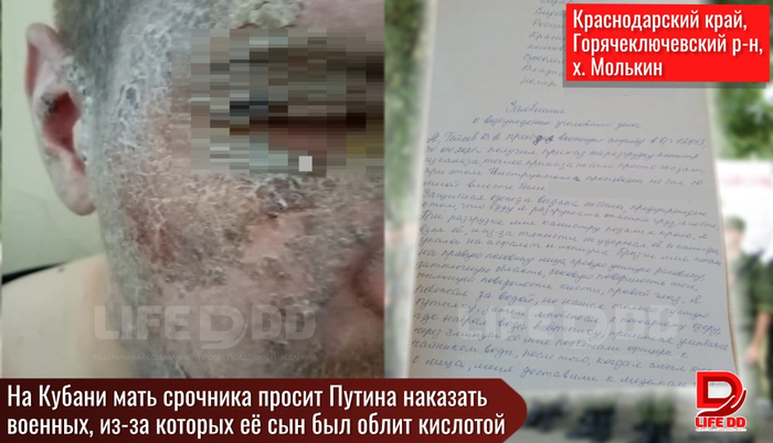 "Выяснилось, что это была кислота. Сына никто не уведомил, что он будет переносить такое опасное вещество. Более того, с ним не провели инструктаж, ему не выдали химзащиту и не объяснили технику безопасности. Кислота попала на лицо, шею, подбородок, руку, а также другие части тела. Сначала, из-за сильного жжения, Владик пытался смыть всё водой, затем его отправили в медпункт. Старший лейтенант, попросивший его перенести цистерны, быстро подсунул сыну лист о том, что он прошёл технику безопасности, чтобы он его подписал. Таким образом военный пытался скрыть следы халатности. Затем он спросил, есть ли у него деньги, чтобы заправить машину, на которой они потом отправились в госпиталь", - сообщила Елена в ходе разговора с журналистом Lifedd.