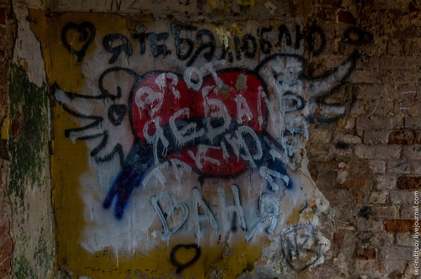 Стены обильно покрыты следами любвеобильной молодежи и "дозорных":