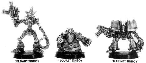 Tinboyz - это тип роботов, созданных орочьими меками так, чтобы они выглядели как металлические версии живых существ. Традиционно, они сделаны в форме космических десантников, Эльдар или Скватов, хотя с более ярко выраженными особенностями каждой из рас, предназначенными для имитации и высмеивания особенностей этих видов. Для орков такие действия кажутся забавными, и им нравится создавать такие хитроумные и невероятно остроумные (по их мнению) пародии на своих врагов.
