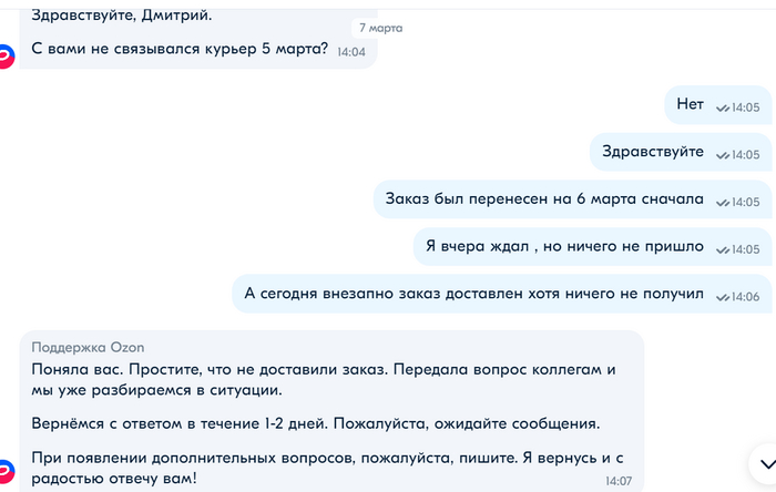 Я дождался 5 марта, срока доставки, но никто так и не приехал. Ну ничего, бывает, подумал я. Заказ был закономерно перенесен на 6-ое марта, но и 6-го никто так и не приехал.