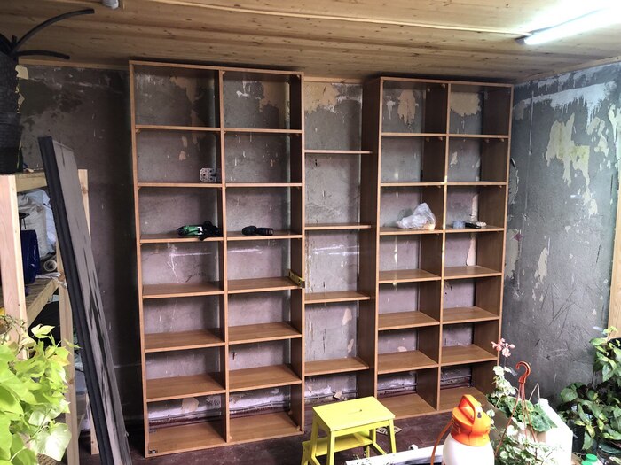 модернизировал старый родительский шкаф под текущие нужды загородом (получилась отличная система зимнего хранения горшков и кашпо для цветов)