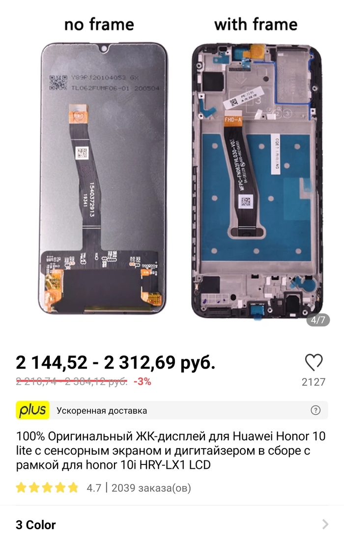Заказал с пардиректа модуль на honor 10i orig lcd, по цене 3500₽, но по моему пришёл модуль который стоит 2650₽ у них же, потому что шлейф соответствует фото на сайте.