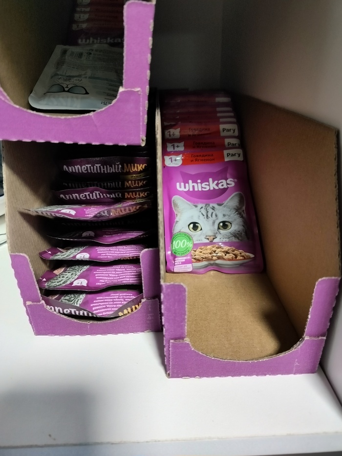 Какие то уже были у нас в остатке, мы закупились Вискасом. На каждые 3000 потраченных средств 1500 возвращается на карту. Это нас очень выручило перед новогодними праздниками, за что Т-Банку огромное спасибо!