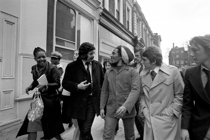 Боб Марли, обвиняемый в хранении марихуаны, по пути в суд, 1977 год, Лондон.