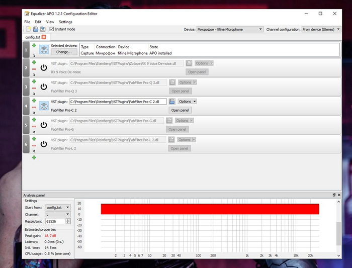 Поэтому я скачал Equalizer Apo и установил туда все плагины, которые я настроил для обс.