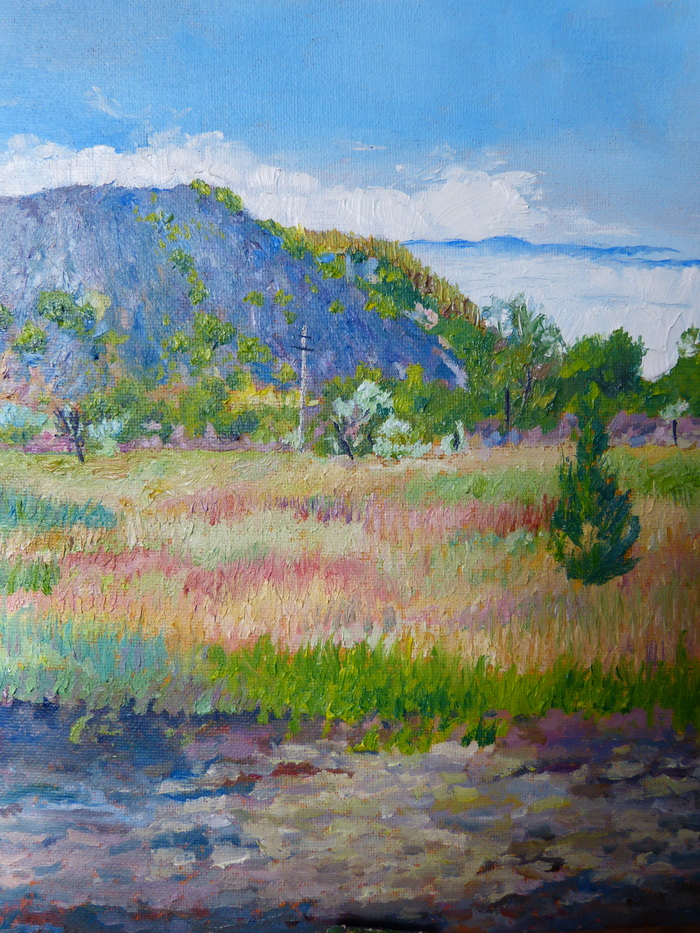 Ездили на рыбалку и порисовать, я больше за вторым. День был жаркий, но спасибо абрикосе, своими ветвями она спасла нас, укутав в тени. Пробыли там часов десять. Под конец небо начали окутывать, резко появившиеся тучи. Мы очень быстро начали собираться, ибо в той местности дороги по большей части состоят сплошь из глины и небольших участков щебёнки, от чего уехать от туда после или во время дождя достаточно затруднительно. Мы не успели(. Выбирались под дождём, застряли в углублении, еле выбрались. Машина была грязная шо чёрт. Но мы добрались до дома. На авто мойке смотрели на нас косыми взглядами, откуда мы такие красивые появились. Стоящие рядом машины в очереди казались идеально чистыми по сравнению с нами. Было весело и местами страшно, когда в поле сверкало по несколько молний за пару секунд.