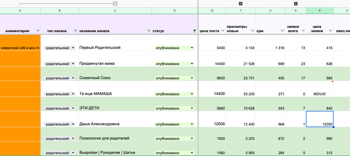 Когда у тебя много опыта, разных своих и чужих табличек и кабинетов под рукой, собесы становятся делом техники. Табличка посевов в телеграме, кстати, моя.