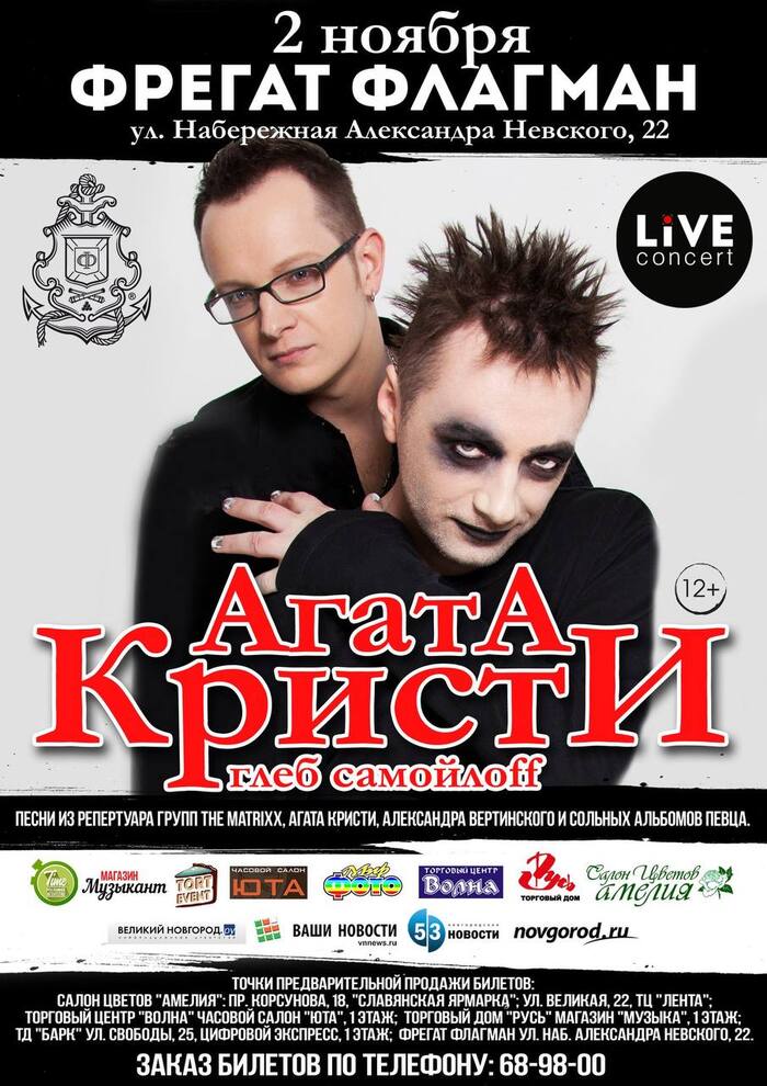 Иногда в рекламе повторяли технологию “хиты короля и шута”, так наткнулись на "творческий вечер Глеба Самойлова". Тогда он принципиально не пел песни Агаты Кристи. Я понимал, что продать может только такая подача. В интернете писали о концерте очень аккуратно: "песни из репертуара Агаты Кристи". Песни там были, но малоизвестные. А вот аудиоролик для радио, я сделал агрессивный он начинался с песни "Я на тебе, как на войне".