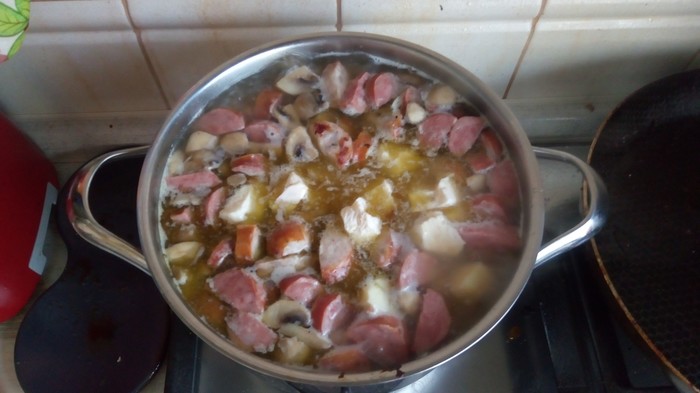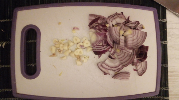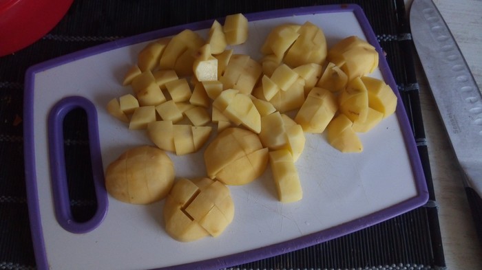 Пока все это дело там плавает чистим и режем картошку и глибы, шинкуем лук и чеснок