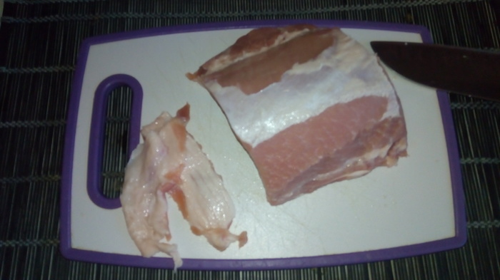 Собственно, заливаем водой, закидываем мясо, периодически помешивая, так как оно всплывает, чтоб размокло со всех сторон.