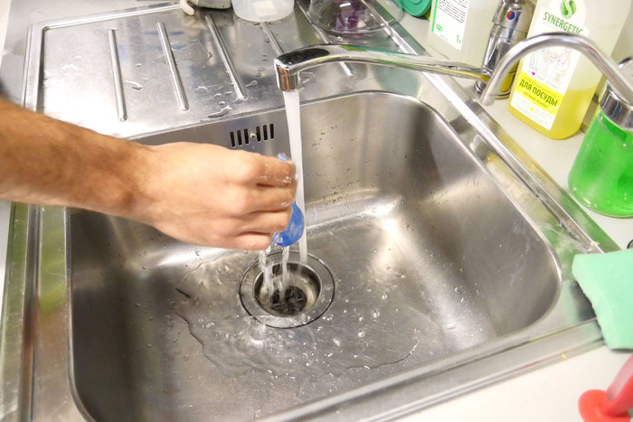 Вроде бы вода должна вытекать через сетку - но она этого не делает!