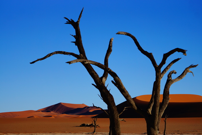 Мертвая Долина или в оригинале Deadvlei - уникальное место, которое красуется практически на всех открытках, посвященных Намибии. Рас положенная на территории национального парка Намиб-Науклюфт, окруженная дюнами Соссуфлей Мертвая Долина является одним из самых посещаемых туристами достопримечательностей страны.