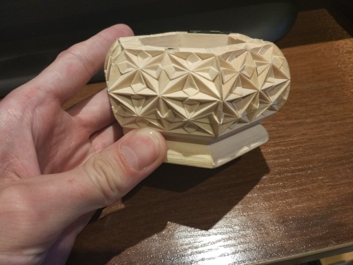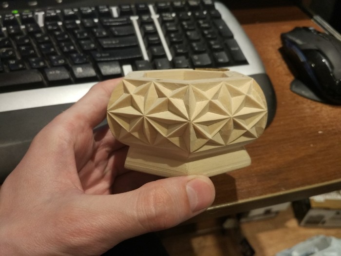 Сошлифовывал вышеназванные части гравером, дальше уже саму сферу шлифовал вручную наждачкой. Шлифовал по мокрому, потому как пыль эпоксидной смолы не слишком полезная штука, ну и так наждачная бумага меньше забивается. Начинал с 400 наждачки и до 2000. Также не забываем пользоваться респиратором. Получаем в итоге вот такую матовую сферу.