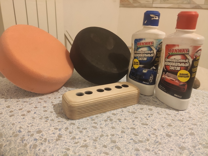 Дальше черед полировки. Полировал двумя поролоновыми кругами автомобильными полиролями с помощью шуруповерта.