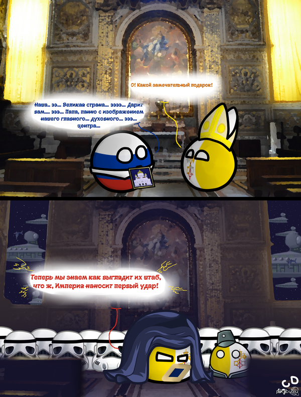 SCDcountryballs 10 лет назад Серия Salvation Community Daily Империя наносит первый удар Президент РФ Владимир Путин подарил понтифику панно с изображением храма Христа Спасителя и несколько томов православной энциклопедии. [моё] Scd Scdaily Countryballs Россия Ватикан