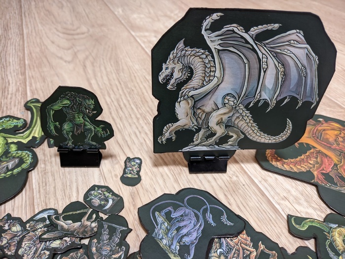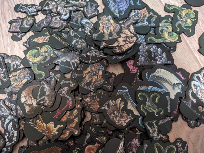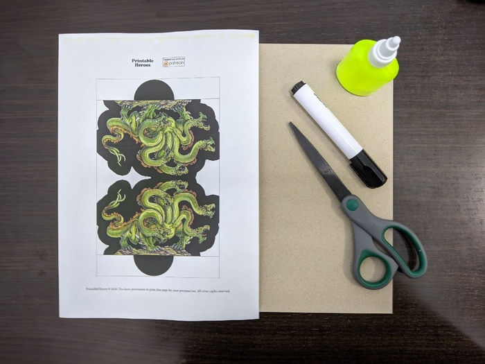 Играя в ДнД, или похожие ролевые игры вживую, всегда хочется немного оживить стол, потому что конечно же можно использовать для обозначения героев и их противников кубики, шахматы, и много чего еще. Так же конечно можно использовать официальные фигурки, или распечатанные 3д модели, но у них есть три главных недостатка, по моему мнению это цена, размеры, отсутствие покраски, конечно можно вложится, заказать покраску, или покрасить самому, но как только подумаешь о том что вот нужно десяток гоблинов, штук пять орков, дракон, тролли и так далее... А если еще и играть не дома, перенос этого всего потребует небольшого ящика. Для себя я нашел следующий выход, бумажные миниатюры, получается примерно вот что: