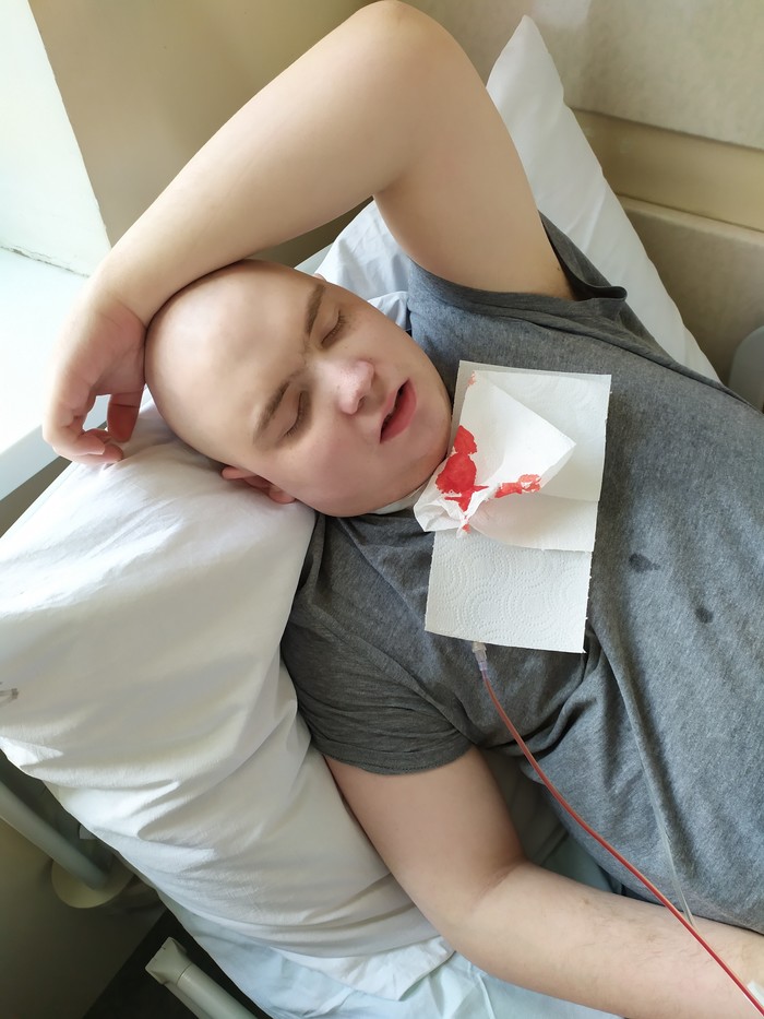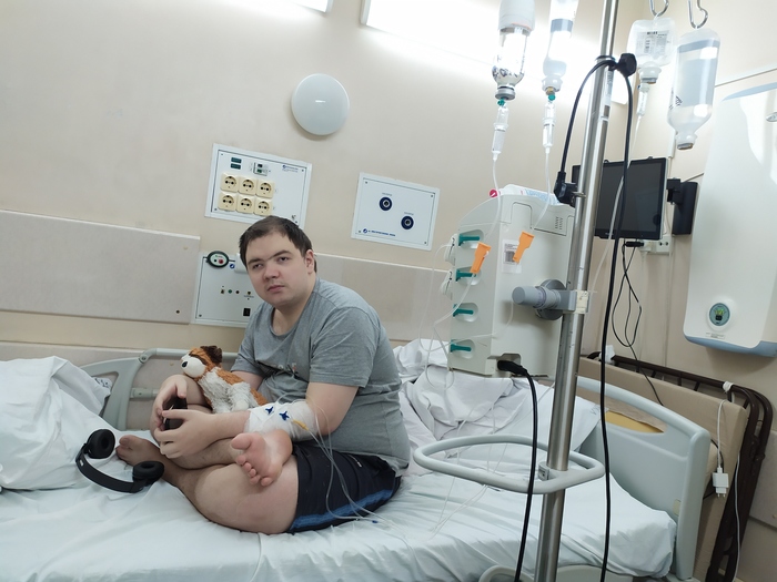 (Позже выяснилось, что доктор вообще про нашу госпитализация ничего не знал, его не предупредили) Нам сказали опять взять талон на госпитализацию в регистратуре и опять отстоять очередь. Сначала Сашу положили в хирургическое отделение на первом этаже, только я его расположила, как сказали собираться и подниматься на второй этаж в отделение гнойной хирургии. Сашу положили в первую палату, там лежали три старых не ходячих дедушек. Окно было закрыто, было очень душно, дышать просто было нечем, какая то женщина мне сказала, что окно в этой палате открывать нельзя. Розетка рядом была только одна для медицинских нужд. Я пошла посмотреть туалет, что бы потом показать Саши где и что находиться. Туалет оказался в другом конце коридора за поворотом, коридор темный, освещение совсем плохое. При в ходе в туалет был пандус, дальше в этой комнате стояли раковины и дальше был крутой пандус уже в сам туалет. Туалет очень грязный, один на всё отделение. Я очень расстроилась, зная что Саша плохо видит, плохо ходит, сидя писает и мокрый пандус для него тяжелое препятствие которое надо преодолеть. Я пошла посмотреть где его можно будет помыть, здесь было не лучше. Комната была вся захламлена хозяйственными нуждами, в ней была дверь в саму, очень темную, маленькую ванную, перед чугунной высокой ванной был пьедестал обложенной кафельной плиткой. Я сразу представила как Саша пытается туда залесть, а потом я пытаюсь его вытащить от туда. Бойлер как мне сказала медсестричка не работает и помыть Сашу не получится. Все это время я пыталась выловить лечащего врача, что бы показать все заключения. Врач, сказав пару слов, постоянно убегал по делам, поговорить с ним все ни как не удавалось. Наконец то я поговорила с врачом, который честно признался, что не знает для какой цели Сашу положили, что делать биопсию они не будут точно, брать бак посев на стерильность тоже не будут.