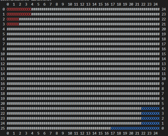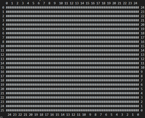 Первый пух и первый прах, как стало ясно Visual Studio Code как то не очень выводит ASCII символы. ну а то и понятно (точнее стало очевидно сразу после попытки). Так же я забыл внести строку с переходом на новую строчку после каждых 25 символов, с кем не бывает. (да?)