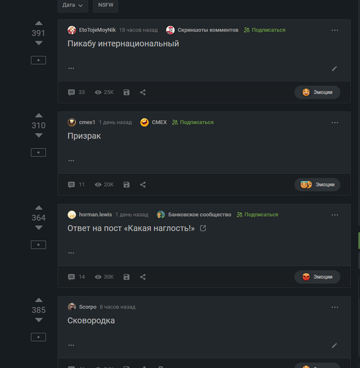 Знаете, не сильно люблю горячее, не хочется обжигаться, жду пока остынет. Добрые разработчики с пикабу помогают мне в этом и поэтому показывают посты на главной странице исключительно с выдержкой. Чтоб не горячее, а уже чуть теплое было.