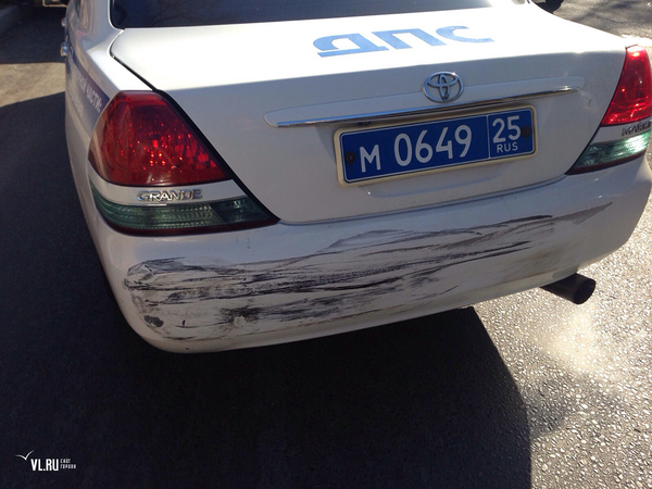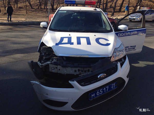 Во Владивостоке водитель Mark 2 протаранил два полицейских автомобиля и попытался скрыться.