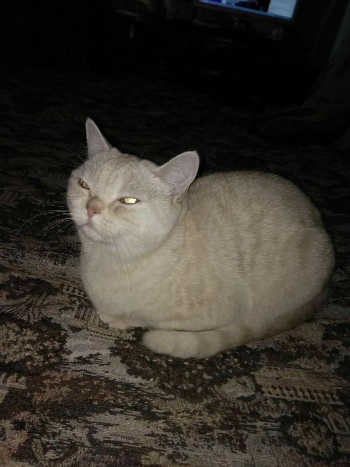 На днях в подъезд подбросили кошку. Принёс какой-то мужик, сунул местной детворе кошку и туалетный лоток. Сказал - "Может кто-нибудь заберёт." В итоге пришлось забрать себе. Кошка, возраст год-полтора, не больше. На вид породистая, похожа на британскую шиншиллу (не особо разбираюсь, буду благодарен, если специалисты точнее подскажут.). Ручная, спокойная, хорошо ладит с людьми.