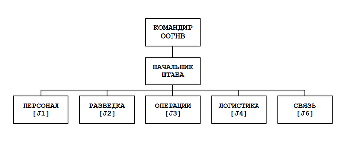 5. Офицер по снабжению (Supply Officer [S4]). Сотрудник по снабжению отвечает за обучение и функционирование секции снабжения и технического обслуживания группы. Он планирует, координирует и контролирует работу служб снабжения, эвакуации, транспортировки, технического обслуживания и аналогичных служб внутри группы. Он поддерживает тесный контакт с потребностями оперативной группы и с секцией материально-технического обеспечения вышестоящего штаба.
