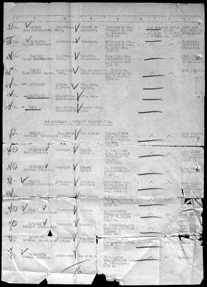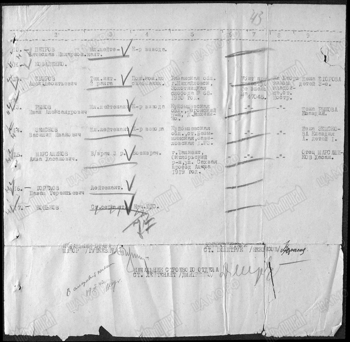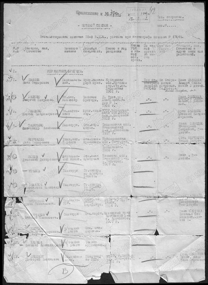 Представляю именно список по форме No.2-а на погибший младший и рядовой состав 18 ВДБр., 8 ВДК при катастрофе эшелона No.47045 — 30/XII-41 г. на станции Лосино-островское города Бабушкин, Московской области...".