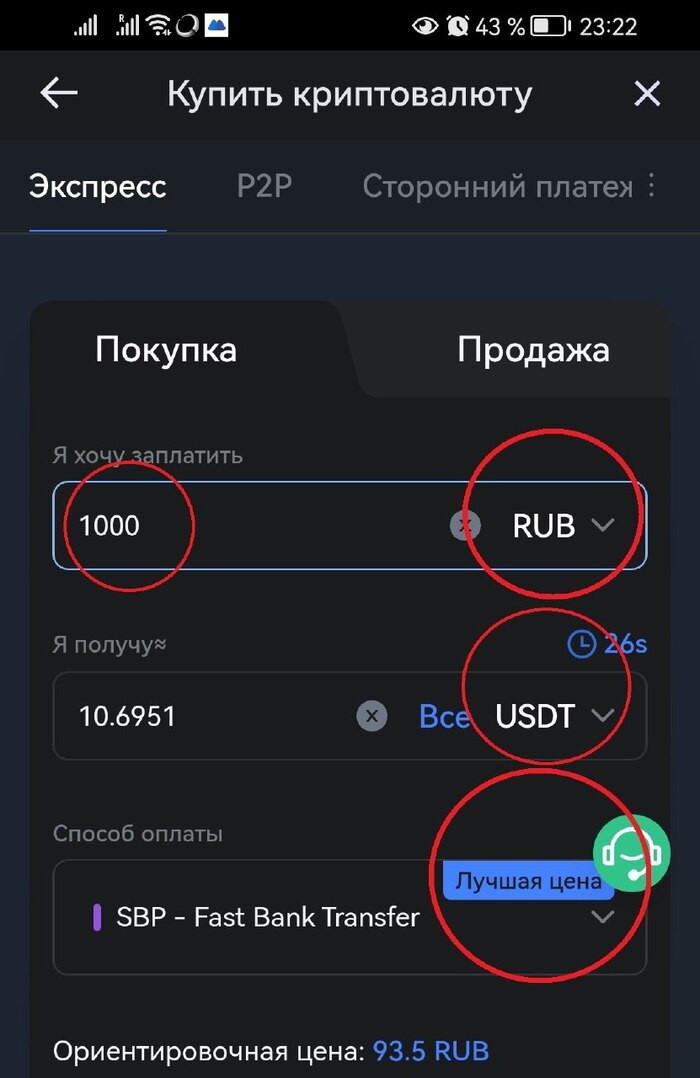 На вкладке "Экспресс", в первой строке выбираем "RUB" и пишем желаемую сумму, в данном случае это 1000 .
