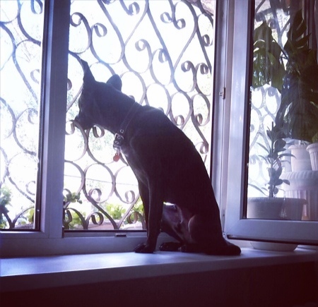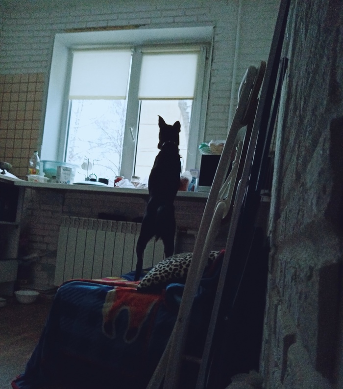 Любимое занятие - смотреть в окно, наблюдать за проходящими мимо людьми, порыкивать на других собак, повизгивать на кошек и детей.