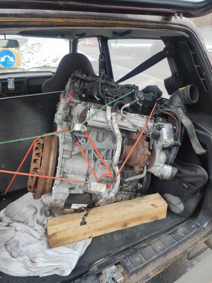 На фото - процесс транспортировки двигателя BMW N47 (2 литра дизель).