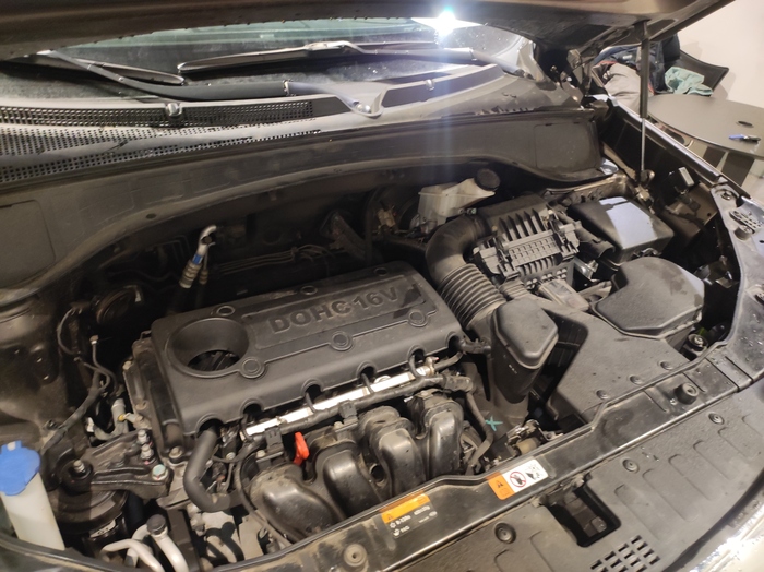 Под капотом легендарный двигатель G4KE, объемом 2.4 литра (по меркам youtube каналов и ремонтов).