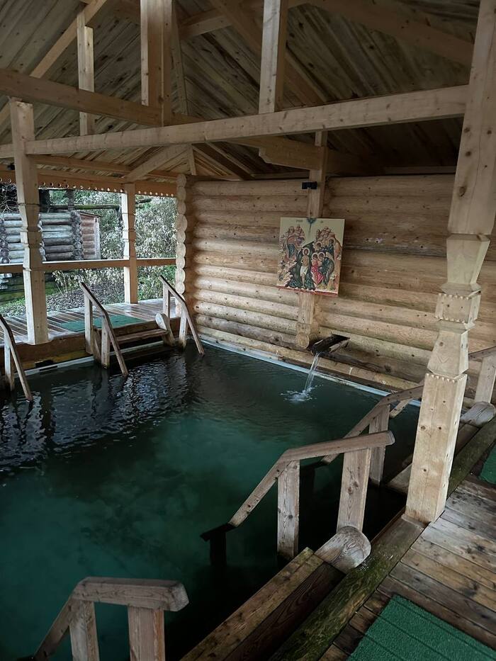 При желании можно окунуться в купели или под мини водопадом)