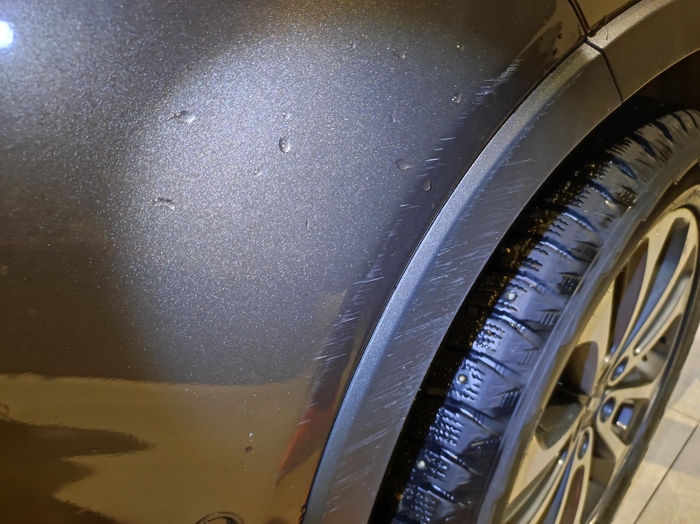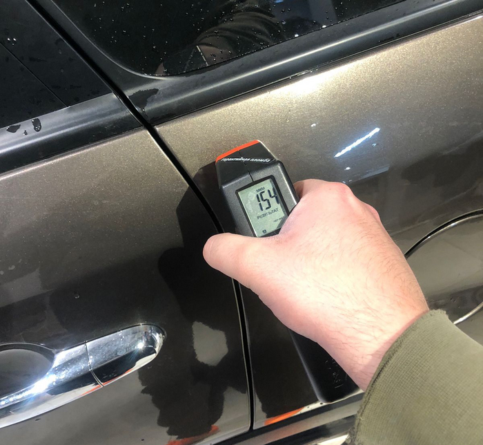 К слову, воричного окраса заднего крыла мы не нашли. В этих местах бьется с небольшим утолщением как с левой, так и с правой стороны. Переходов краски не наблюдается, шагрень не отличается.