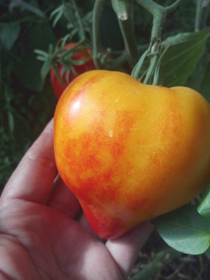 Кого интересуют названия, спрашивайте, это не реклама, по себе знаю, насколько сложно найти томатики и вкусные и не болявые. Поэтому расскажу. Гибрид с предыдущего фото оказался вообще максимально универсальным: розовый, мясистый, идеальный для салата, в баночках в собственном соку кусочки не разваливаются, кетчуп густой, а уж вяленый-слов нет как хорош.
